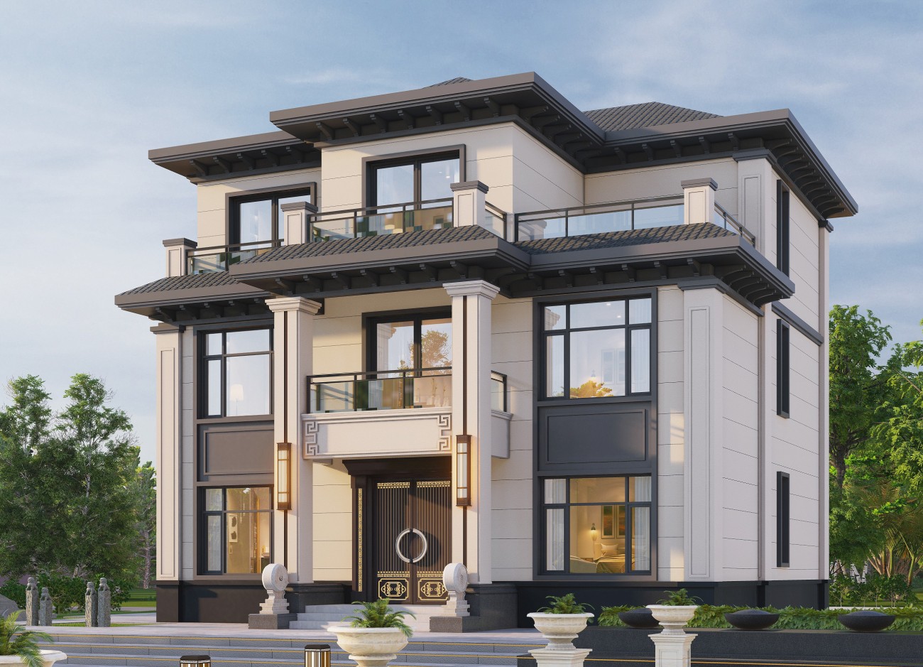 昌平17 三层新中式(10x12米)-【易设计】